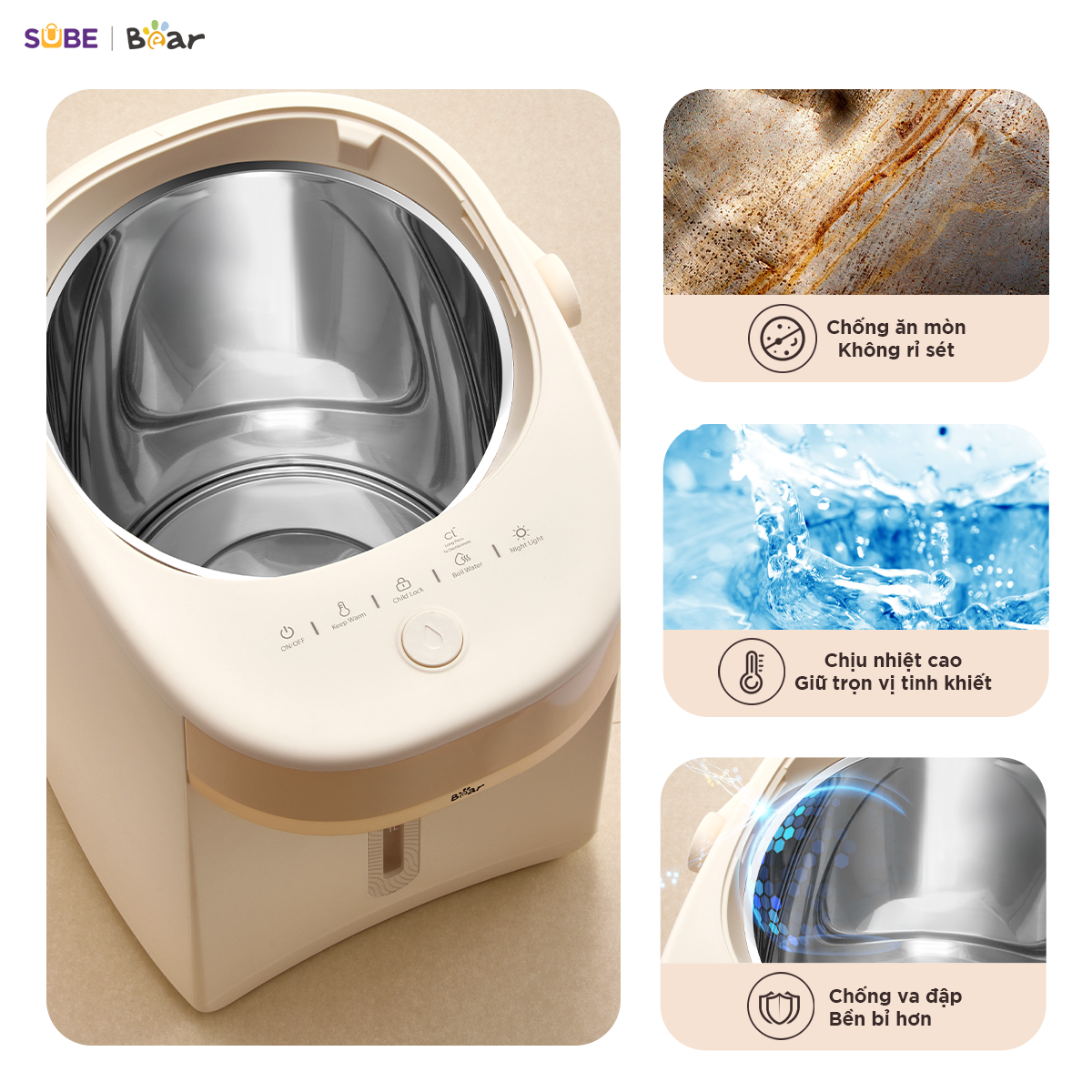 - Bảo vệ hệ tiêu hóa non nớt của bé: Khi pha sữa cho bé, nguồn nước tinh khiết là vô cùng quan trọng. Chiếc bình thủy điện Bear giúp bạn an tâm hơn về điều đó, bảo vệ hệ tiêu hóa còn non yếu của bé khỏi những tác động tiêu cực.