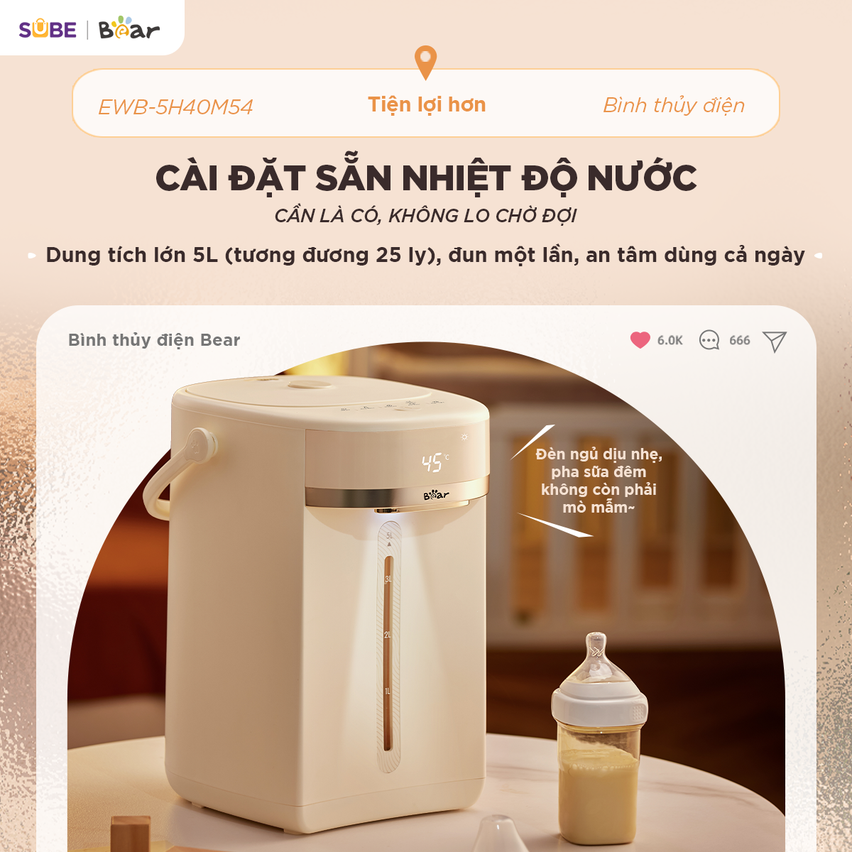 Bình thủy điện Bear 5L EWB-5H50M54 không chỉ là một thiết bị đun nước thông thường, mà còn là một người bạn đồng hành đáng tin cậy, giúp bạn tiết kiệm thời gian, công sức và tận hưởng cuộc sống một cách trọn vẹn hơn. Dưới đây là những đặc điểm nổi bật, được phân tích sâu sắc để bạn thấy rõ giá trị mà sản phẩm mang lại: