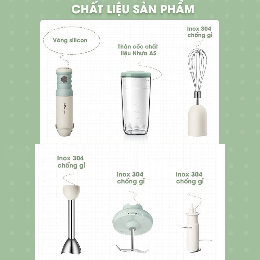 Bộ máy xay cầm tay đa năng Bear JBQ-B50E1 sử dụng chất liệu an toàn cho sức khỏe của bé
