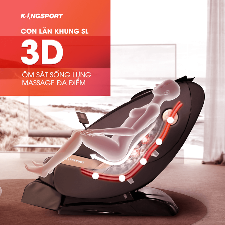 Khung sườn SL ôm sát dáng người nằm có tác dụng nâng đỡ và kéo dãn cơ thể đem lại hiệu quả massage ưu việt, con lăn 3D có thể di chuyển đến những vùng được cho là khó khăn nhất.