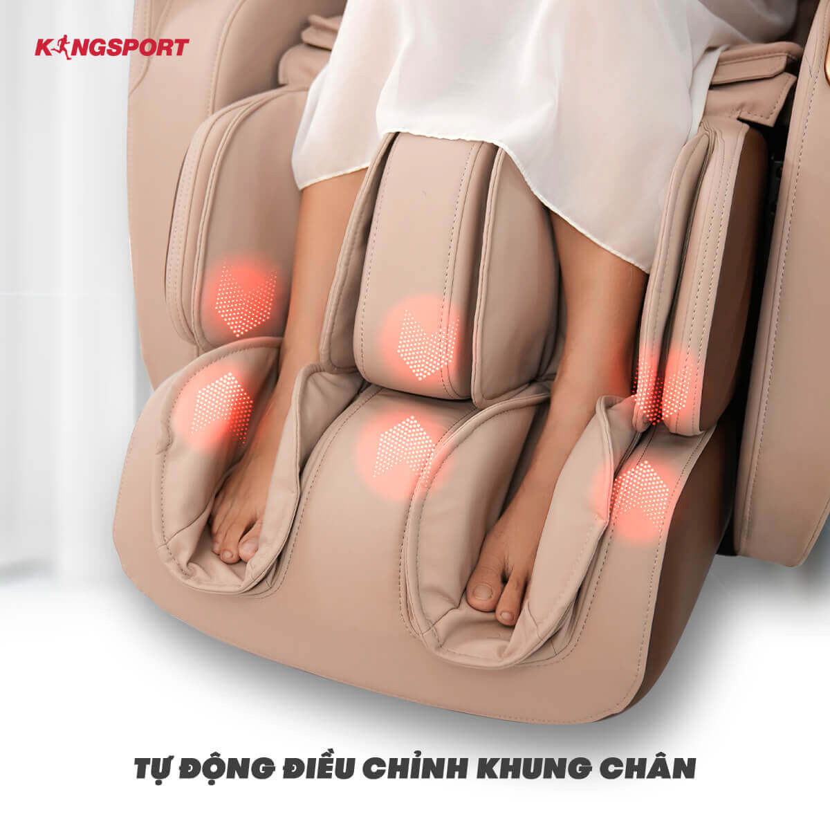 Khung chân ghế điều chỉnh tự động, phù hợp gia đình sử dụng khi các thành viên có chiều cao khác nhau. Khung tựa lưng áp dụng công nghệ dẫn hướng đường cong, được nghiên cứu để phù hợp với đường cong của lưng người ngồi, ôm sát cơ thể cho bài massage thêm hiệu quả.