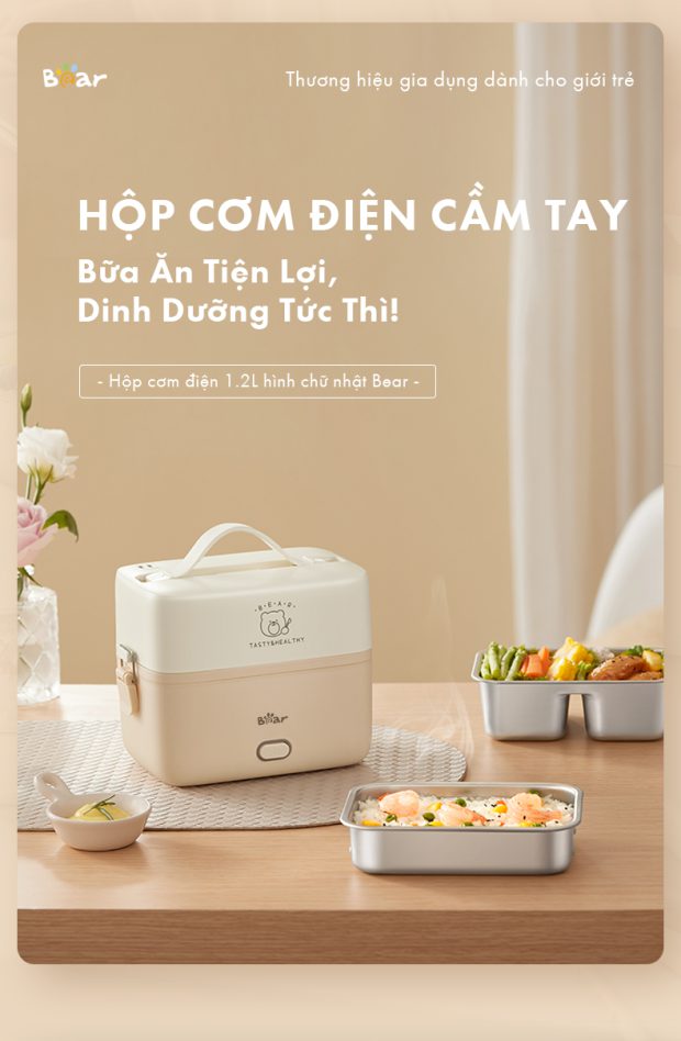 Hộp cơm điện Bear 1.2L LB-4H12C là lựa chọn lý tưởng không chỉ cho dân văn phòng mà còn cho sinh viên hay những buổi dã ngoại, picnic cuối tuần cần một bữa ăn nóng hổi, chất lượng.
