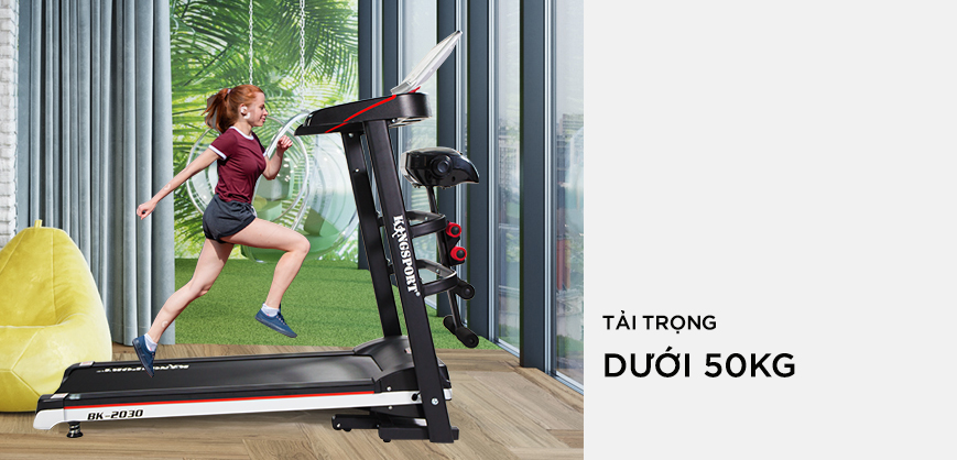 Khuyến nghị: Máy chạy bộ BK-2030 kích thước nhỏ gọn, thích hợp cho người dùng dưới 50kg như phụ nữ, trẻ em, người lớn tuổi.