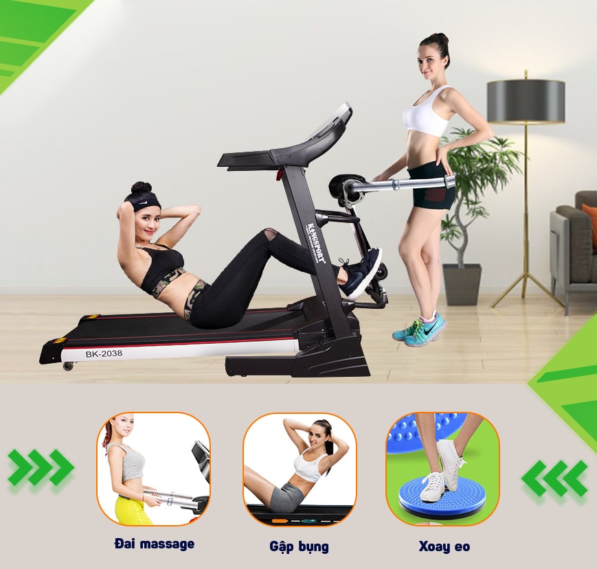ĐẶC ĐIỂM NỔI TRỘI CỦA MÁY CHẠY BỘ BK-2038 ĐA NĂNG
