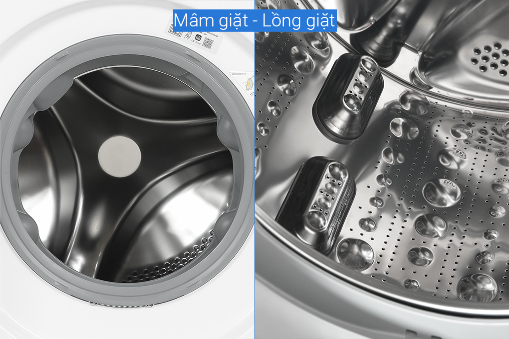 | Tiện ích: | Chẩn đoán lỗi Smart Diagnosis Giặt nhanh Hẹn giờ giặt Khóa trẻ em Thêm đồ trong khi giặt Vệ sinh lồng giặt Cho phép điều khiển máy giặt từ xa qua ứng dụng LG ThinQ |