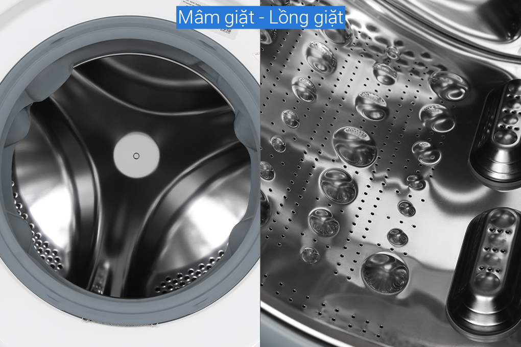 - Lồng giặt bằng thép không gỉ bền bỉ và duy trì được độ sáng bóng sau khoảng thời gian sử dụng.