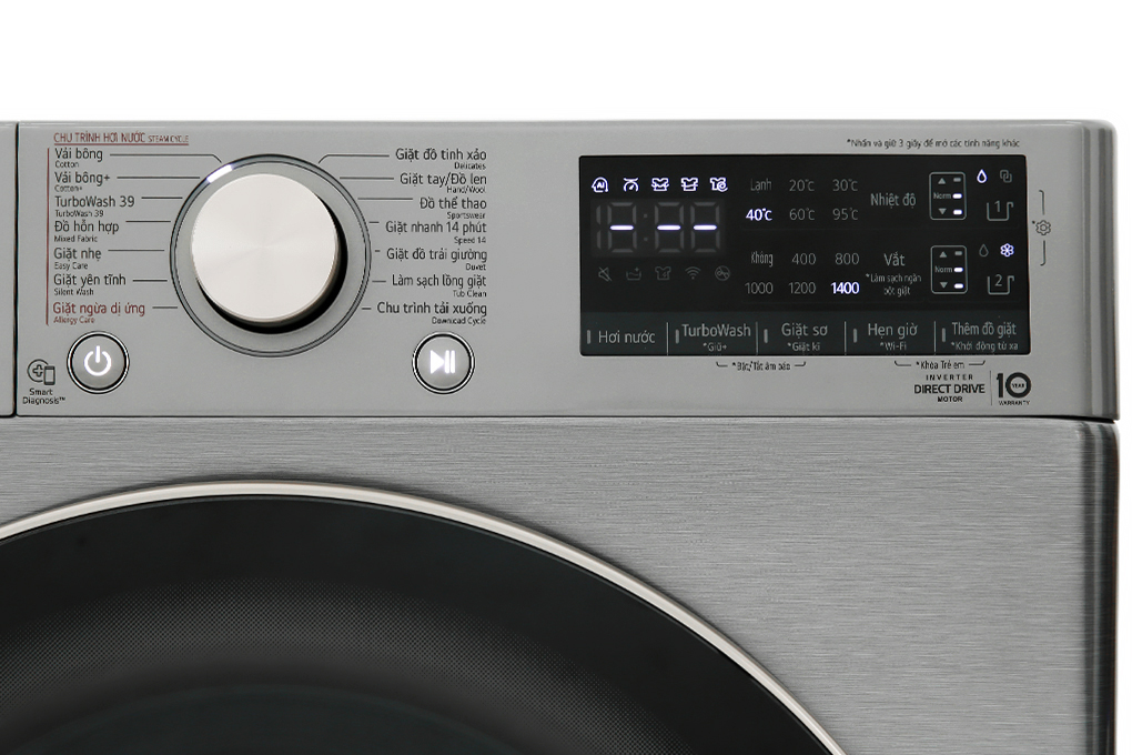 | Tiện ích: | Chẩn đoán lỗi Smart Diagnosis Hẹn giờ giặt Khóa trẻ em Thêm đồ trong khi giặt Tự động phân bổ nước giặt Cho phép điều khiển máy giặt từ xa qua ứng dụng LG ThinQ |