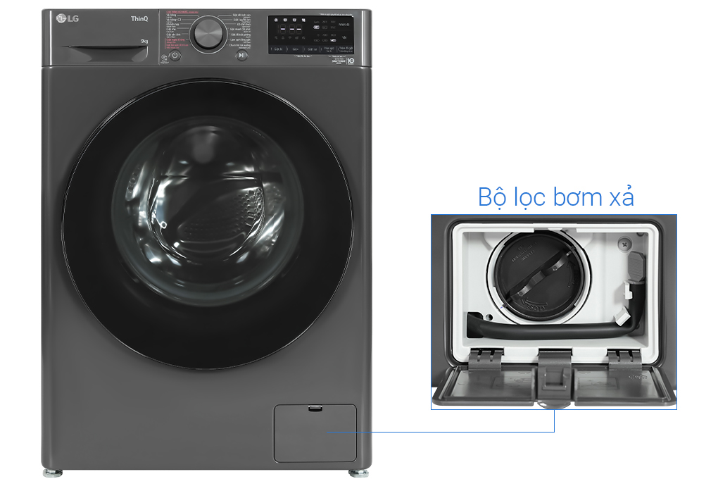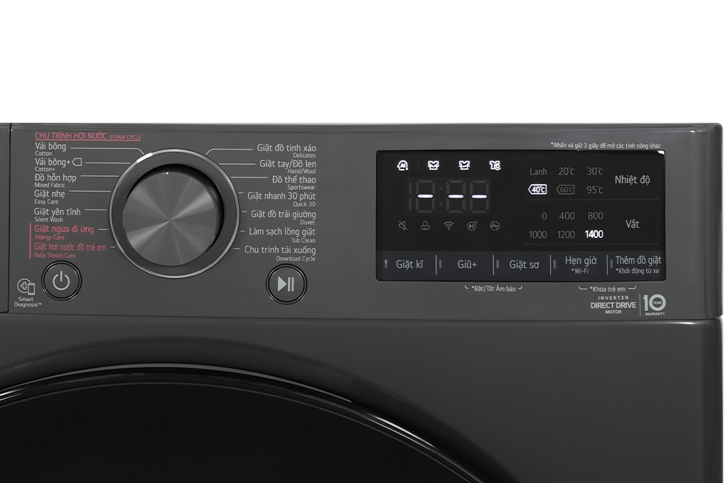 | Tiện ích: | Chẩn đoán lỗi Smart Diagnosis Hẹn giờ giặt Khóa trẻ em Thêm đồ trong khi giặt Vệ sinh lồng giặt Cho phép điều khiển máy giặt từ xa qua ứng dụng LG ThinQ |