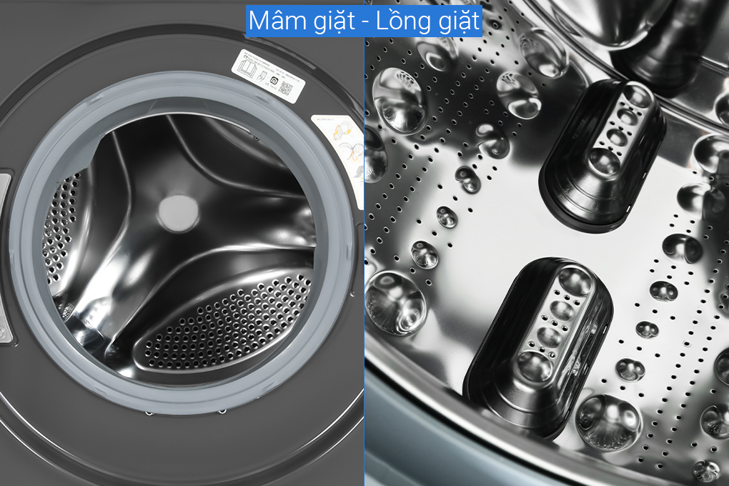 - Lồng giặt được hoàn thiện bằng chất liệu thép không gỉ giúp chống lại vi khuẩn đến 99%, chất liệu này thường được sử dụng trong các loại máy chế biến thực phẩm.