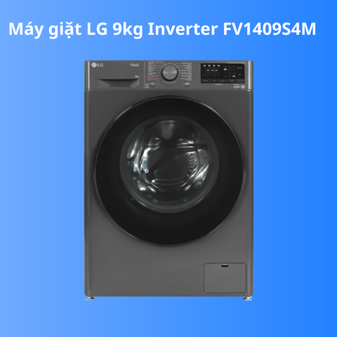 - Máy giặt LG Inverter 9 kg FV1409S4M sở hữu thiết kế là máy giặt cửa trước, với tone màu xám sang trọng. Không chỉ phù hợp với không gian đặt để, mà màu sắc sản phẩm còn giúp tăng thêm vẻ đẹp cho không gian nhà của bạn.