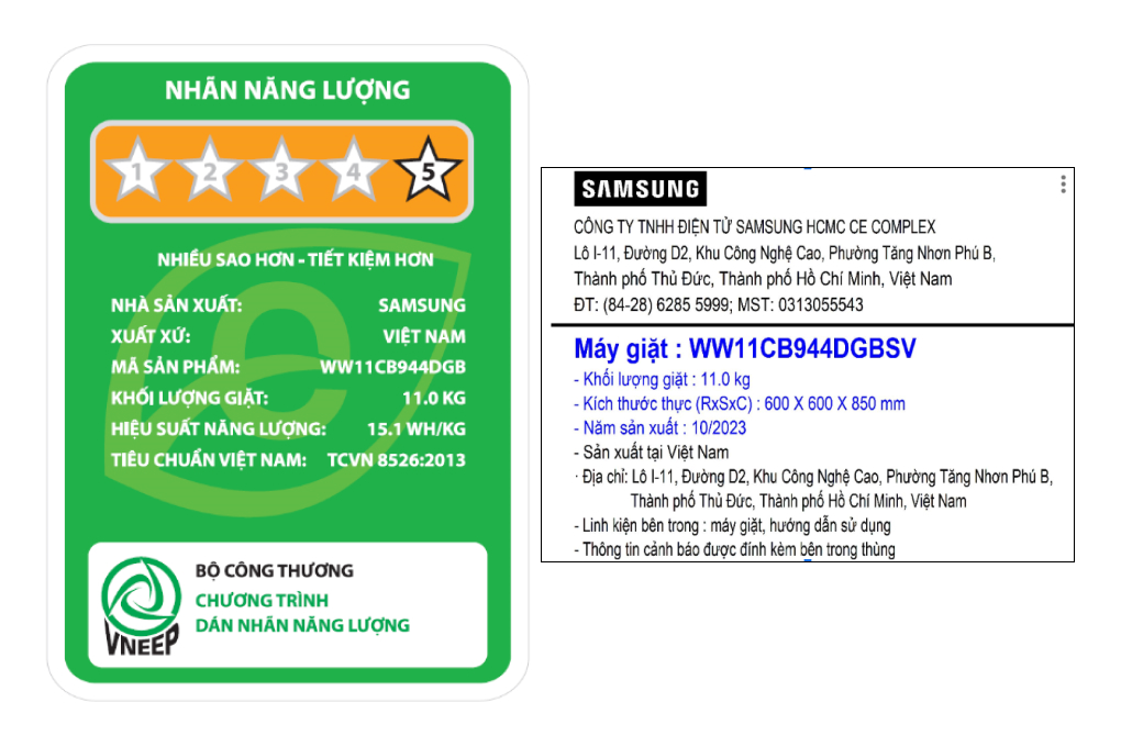 - Sản phẩm đạt nhãn năng lượng 5 sao với hiệu suất sử dụng 15.1 Wh/kg.