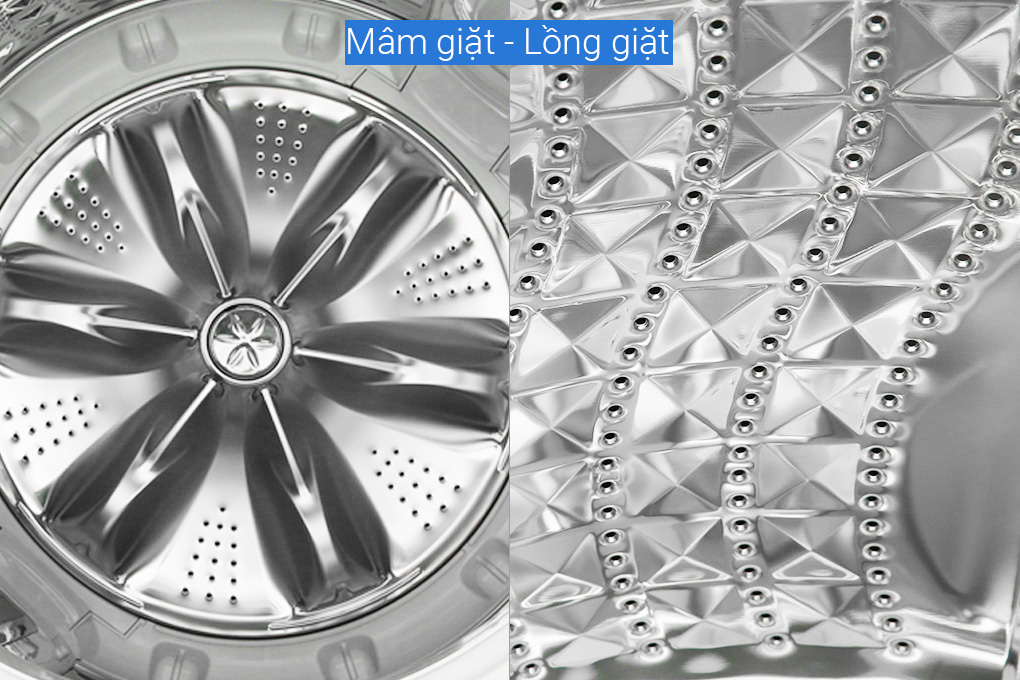 - Lồng giặt cũng được làm từ chất liệu thép không gỉ chống oxy hóa, có độ bóng cao, chế tác kiểu kim cương giúp đảm bảo quá trình giặt giũ hiệu quả.