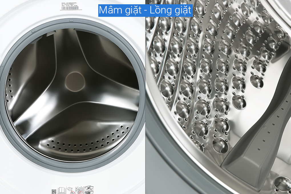 - Lồng máy giặt được làm bằng thép không gỉ, hạn chế được vi khuẩn, mảng bám, tăng độ bền cho máy giặt.