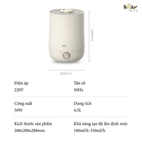 Máy phun sương tạo độ ẩm Bear JSQ-C45U1 vận hành siêu êm, không gây tiếng ồn
