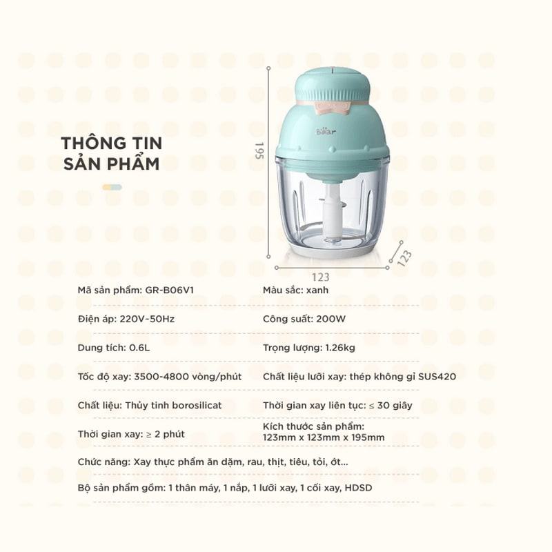 Máy xay ăn dặm Bear 0,6L GR-B06V1 tích hợp 2 chế độ xay thực phẩm