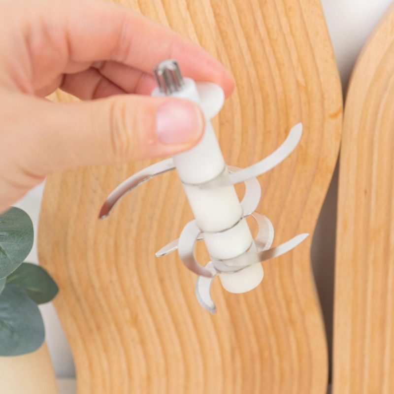 - Lưỡi dao đa tầng: Thiết kế lưỡi dao nhiều tầng với tầng cuối gần sát đáy cối giúp xay nhuyễn thực phẩm ngay cả với lượng nhỏ. Mẹ không cần phải khuấy đảo liên tục trong quá trình xay, giúp tiết kiệm thời gian và công sức.