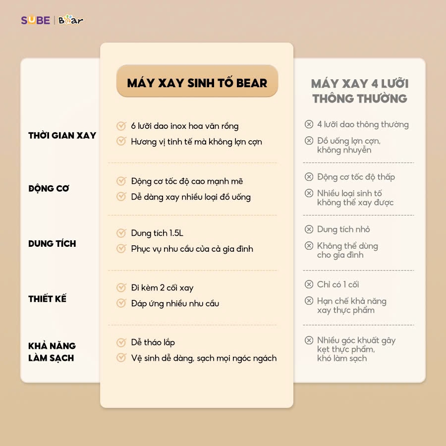 Máy xay sinh tố Bear SB-MX15L không chỉ là một thiết bị nhà bếp hiện đại, mà còn là giải pháp hoàn hảo cho nhu cầu chế biến sinh tố và thực phẩm hằng ngày. Với hiệu suất mạnh mẽ, dễ sử dụng và an toàn tối đa, đây chắc chắn là người bạn đồng hành lý tưởng trong gian bếp của bạn.