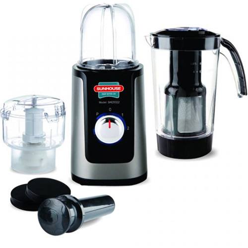 Máy xay sinh tố đa năng SUNHOUSE SHD5322 có thiết kế hiện đại với một cối xay sinh tố kèm lưới lọc bã và 1 thanh đẩy giúp bạn xay trái cây được nhanh hơn, sánh mịn hơn. Bên cạnh đó là 1 cối xay thực phẩm khô và 1 cối xay thịt, đáp ứng mọi nhu cầu làm bếp của bạn.