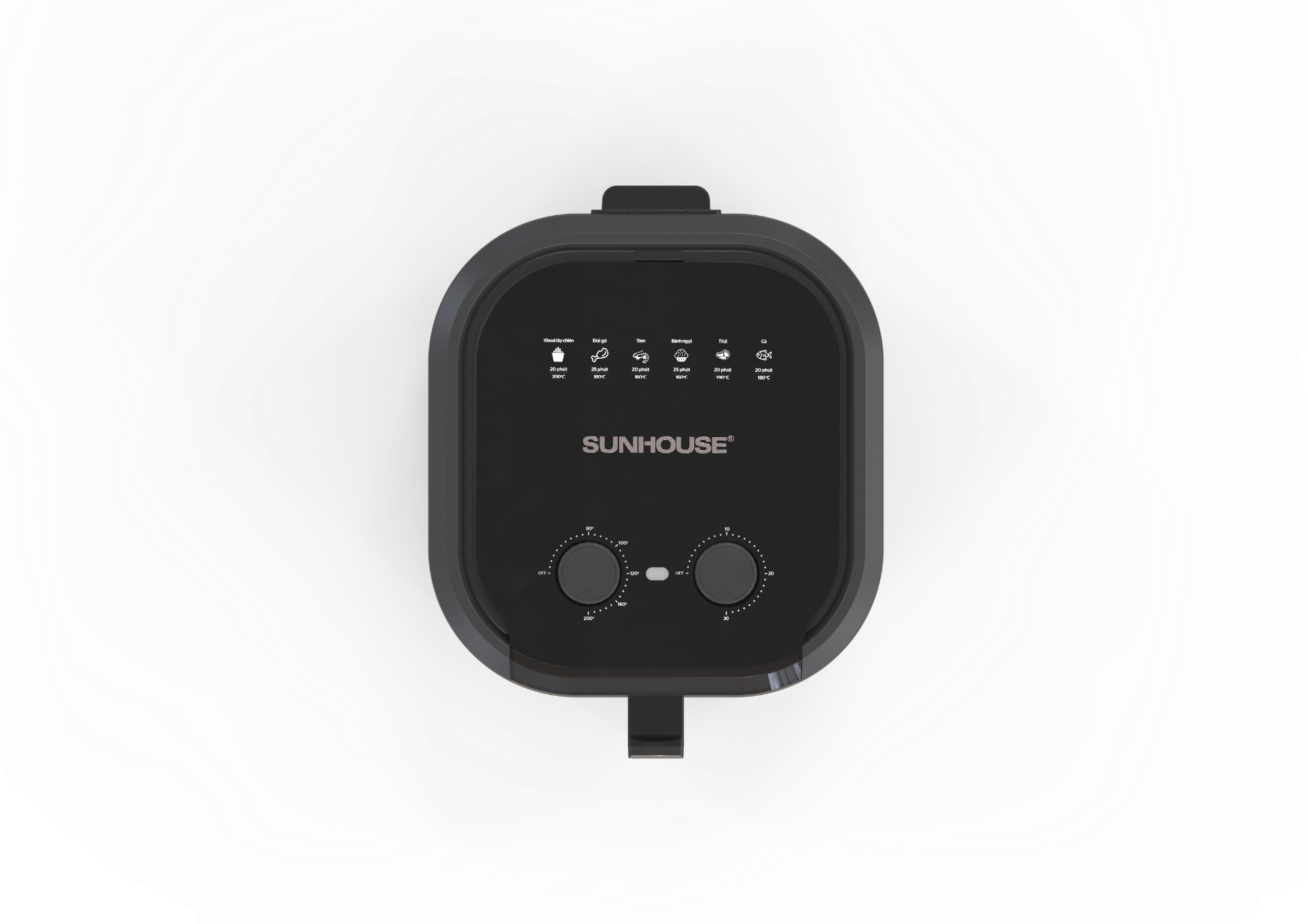 Bảng điều khiển núm xoay + cảm ứng, thời gian 1–30 phút, nhiệt độ 80–200 °C