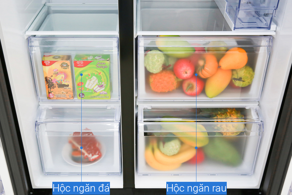 | Tiện ích | 2 ngăn rau củ quả Làm lạnh nhanh Làm đá nhanh Chuông báo khi quên đóng cửa Lấy đá bên ngoài |