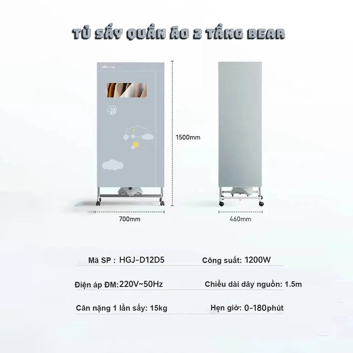 | Tên sản phẩm | Tủ sấy quần áo Bear HGJ-D12D5 |